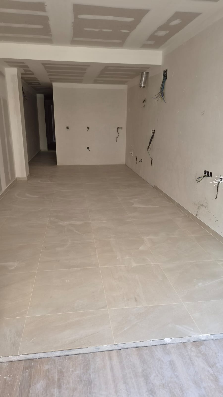 Floor tiling and ceiling installation in all apartments are mostly completed.